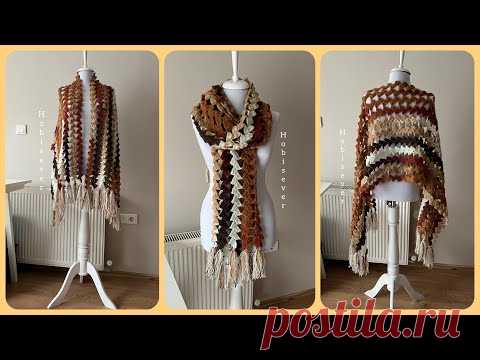 Легкие схемы вязания прямоугольной шали крючком для начинающих / Шарф крючком / СУБТИТРЫ