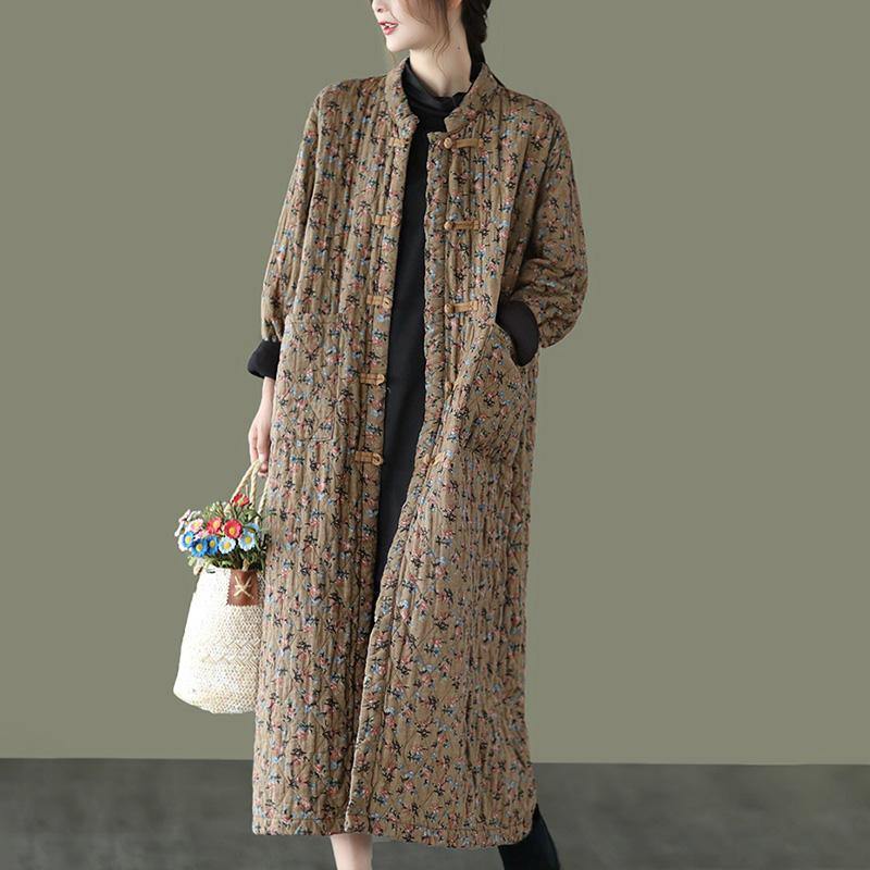 Женское толстое длинное хлопковое пальто в стиле ретро с карманами — Omychic