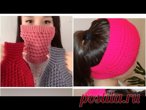 ВЯЗАНАЯ ОБЯЗКА ДЛЯ ВОЛОС,ВЯЗАНЫЙ ВОРОТНИК ДЛЯ ДЕВОЧЕК, Обе повязки для волос,Маска,Шейный воротник