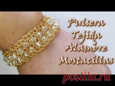 PULSERA TEJIDA A CROCHET CON ALAMBRE Y MOSTACILLAS, curso de tejido en metal.