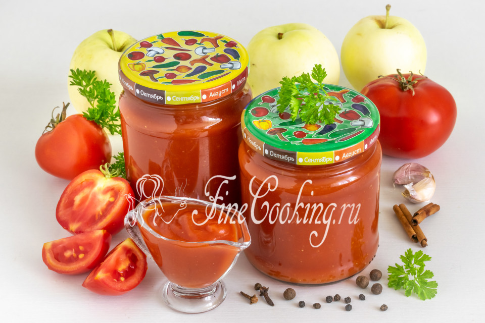 - Из указанного количества используемых в рецепте ингредиентов получается около 1.1 литра готового томатного соуса с яблоками.