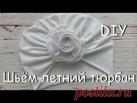 Как сшить летний однослойный ТЮРБАН с цветком из трикотажа
