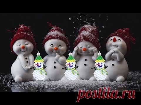 Серьги из бисера на Новый год ⛄️ Снеговики ⛄️ Кирпичное плетение ⛄️Мастер-класс