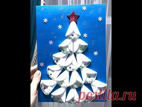 Новогодняя поделка - ёлочка из ватных дисков. Сhristmas tree made of cotton wool.