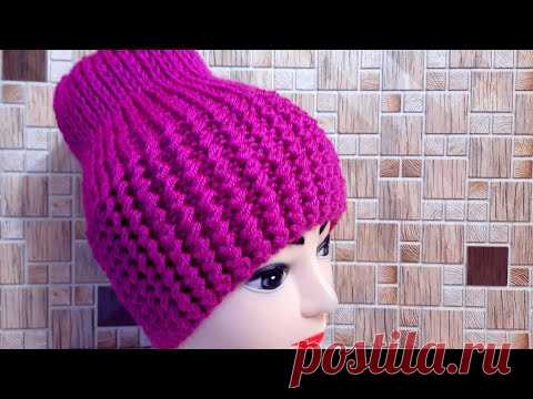Модная шапка спицами. Подробный МК для начинающих