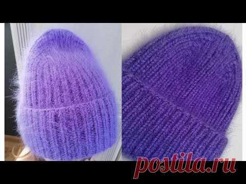 Шапка спицами из пуха норки с красивой макушкой. Простая шапка бини за один вечер!