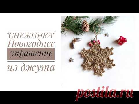 Вязаная СНЕЖИНКА из джута крючком. Новогодний декор, ёлочная игрушка своими руками. Christmas DIY.