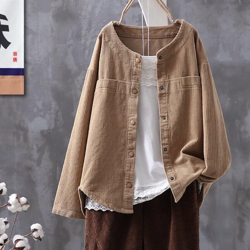 Женские вельветовые рубашки куртка свободная накидная застежка пальто, блуза, топы, повседневная хаки | eBay
