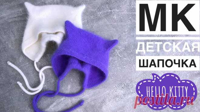 МК детская шапочка с кошачьими ушками “Hello Kitty”🐱 #котошапка#детскаяшапка#детскаяшапкаспицами#мастерклассшапка#чепчик#чепчиккошка#шапкаспицами#шапкаизпуханорки