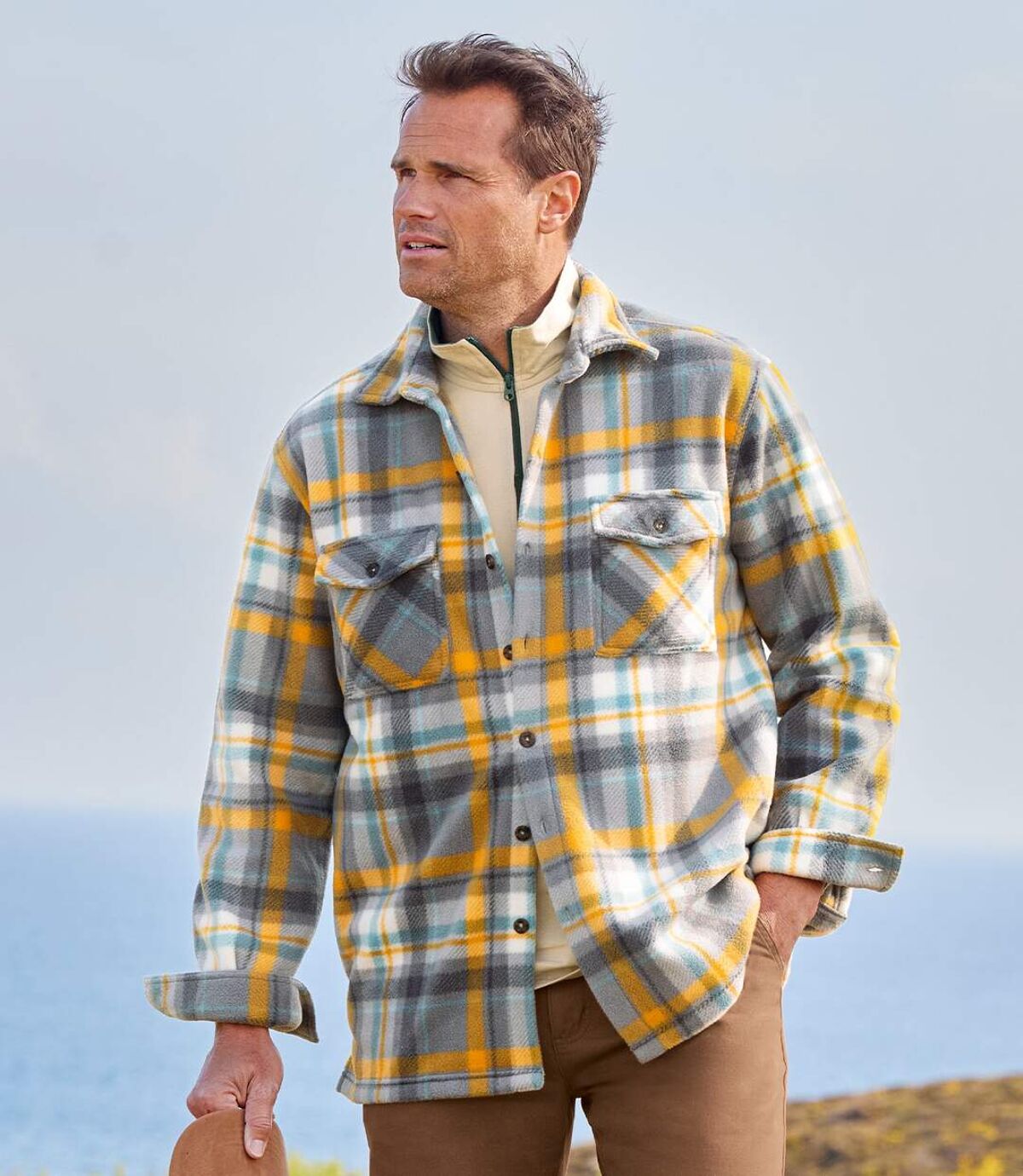 Рубашка-ковбойка из Флиса Состав: 100% полиэстер, плотность около 300 г/м². Длина по спинке: около 81 см для размера L. Машинная стирка при 30°. Цвет: серый в желтую и кремовую клетку. Эта рубашка-ковбойка из флиса подарит Вам мягкость и тепло. Вы можете носить ее застегнутой или расстегнутой в сочетании с любой футболкой. Удобное изделие свободного кроя дополнено 2 нагрудными карманами с клапаном на пуговице, а прямой низ оснащен разрезами по бокам. Рубашка также снабжен...
