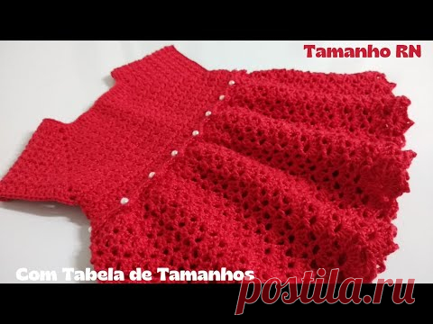 Vestido de Crochê para Bebê, Tamanho RN + Tabela para outros Tamanhos.