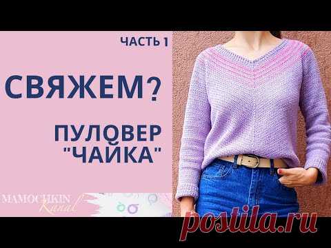 ДЖЕМПЕР ЧАЙКА, ПУЛОВЕР крючком Ч.1 Круглая кокетка "ЧАЙКА" с V-горловиной