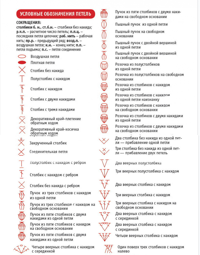 Шпаргалка условных обозначений для вязания крючком в картинках. | От скуки на все руки. | Дзен