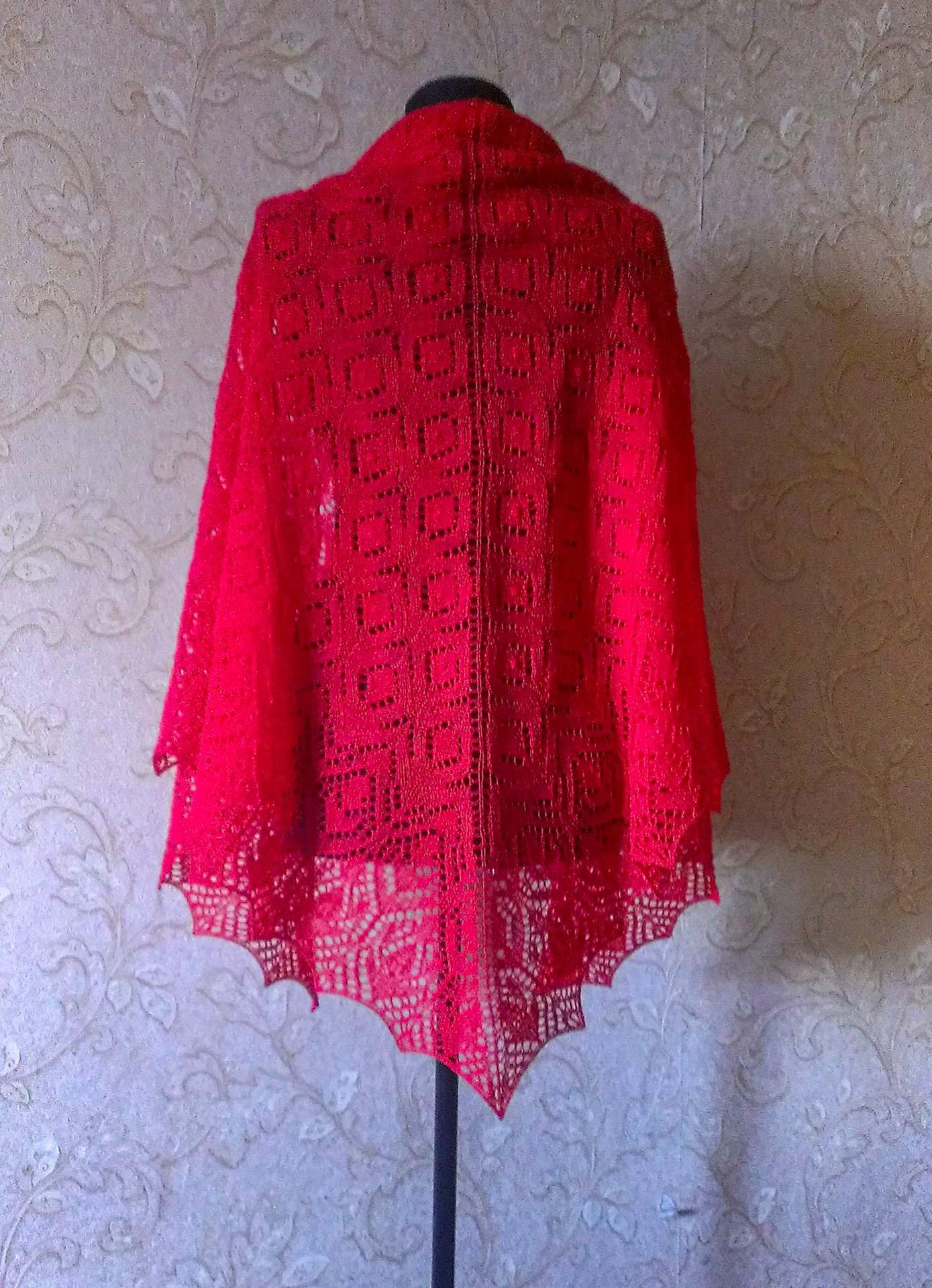 Описание и схема вязания шикарной красной шали «Земляничная поляна» | Сундучок с подарками | Пульс Mail.ru