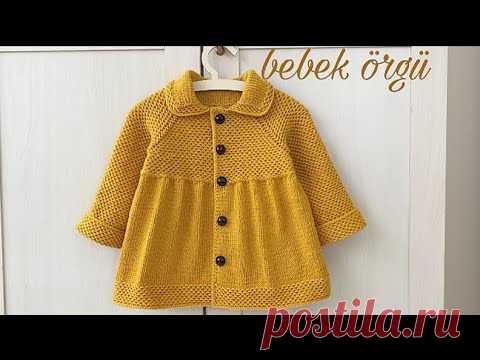 Kız bebekler için örgü manto yapımı / su dalgası roba anlatımıyla bebe yaka ceket modeli