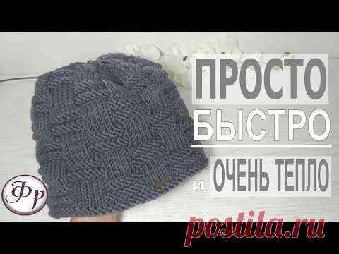 Как связать мужскую шапку/Быстро и просто спицами для начинающих