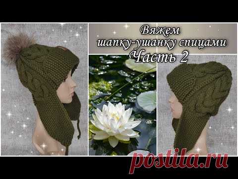 Очень модная женская шапка-ушанка спицами. Часть 2.