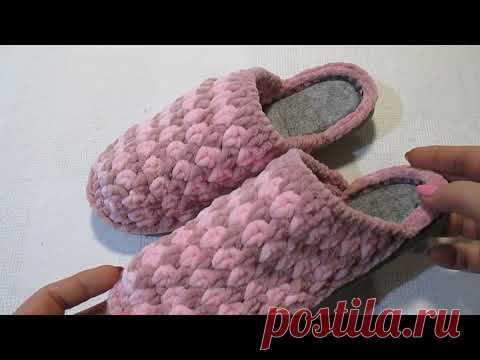 тапочки на войлочной стельке из плюшевой пряжи вязаные крючком