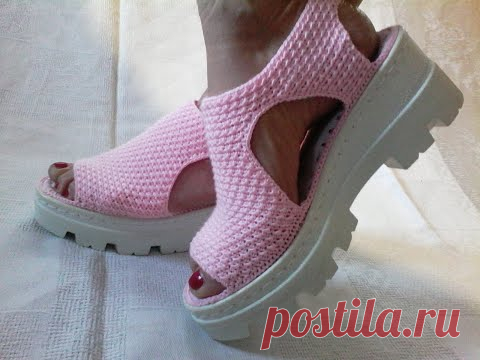 босоножки вязаные крючком на подошве. как обвязать подошву. как обвязать стельку.