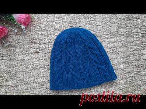 Шапка с красивыми и легкими косами ( аранами) на основе резинки 2х2. // Короткое описание.//