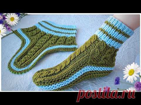 Следки-носочки на двух спицах без шва на подошве. Мастер класс для начинающих.