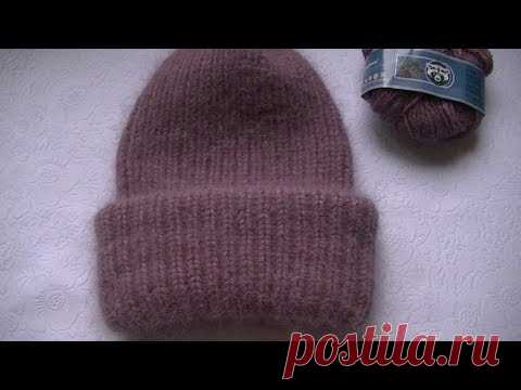 Вязаная шапочка резинкой 1*1 с двойним отворотом из пуха норки.