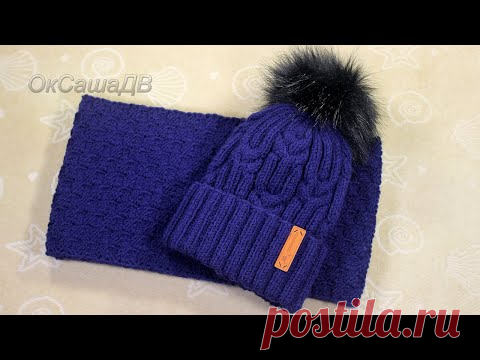 Шапка резинкой 2х2 с косами и шарф узором "Шахматка". Вяжем с Оксаной Валерьевной.