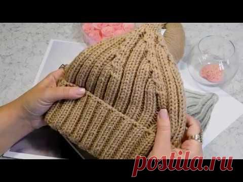 Вяжем шапку бини с удлиненной макушкой (резинкой 2 на 2). Мастер класс по вязанию