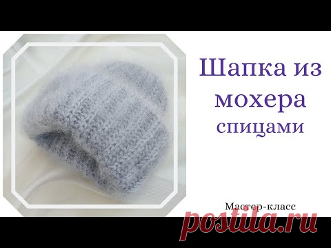 Объемная шапка спицами из Alize Mohair classic. Шапка с двойным отворотом английской резинкой.