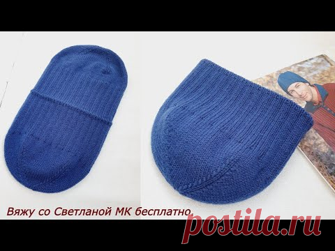 МК Мужская двойная шапка Бини по голове спицами. Пряжа Ализе Ланаголд Классик.