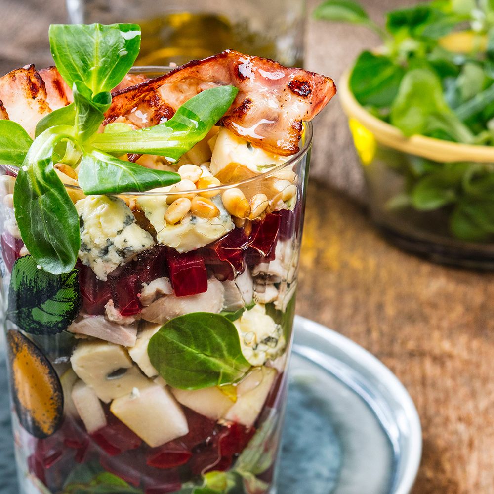 Кулинарные рецепты - Салат с уткой, свеклой, грушей и сыром - с фото и видео инструкцией на сайте Bonduelle.ru