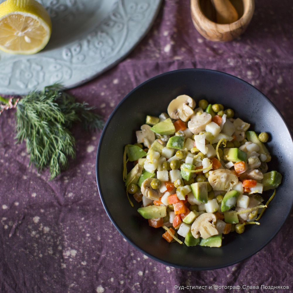 Кулинарные рецепты - Постный оливье с авокадо и маринованными грибами - с фото и видео инструкцией на сайте Bonduelle.ru