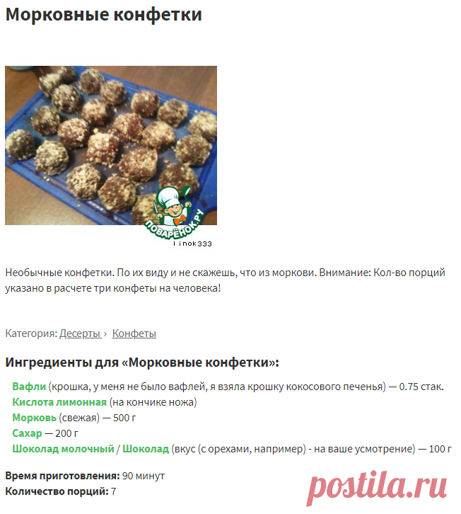 Морковные конфетки – кулинарный рецепт