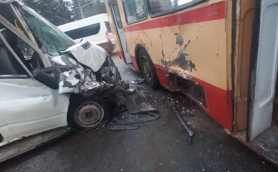 В ДТП с троллейбусом и маршруткой в Йошкар-Оле пострадали 14 человек. Утром 26 декабря в Йошкар-Оле столкнулись троллейбус и маршрутное такси, сообщает прокуратура.