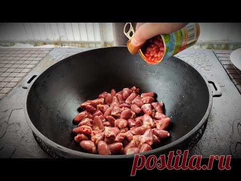 Куриные СЕРДЕЧКИ с фасолью в Казане. Авторский рецепт.