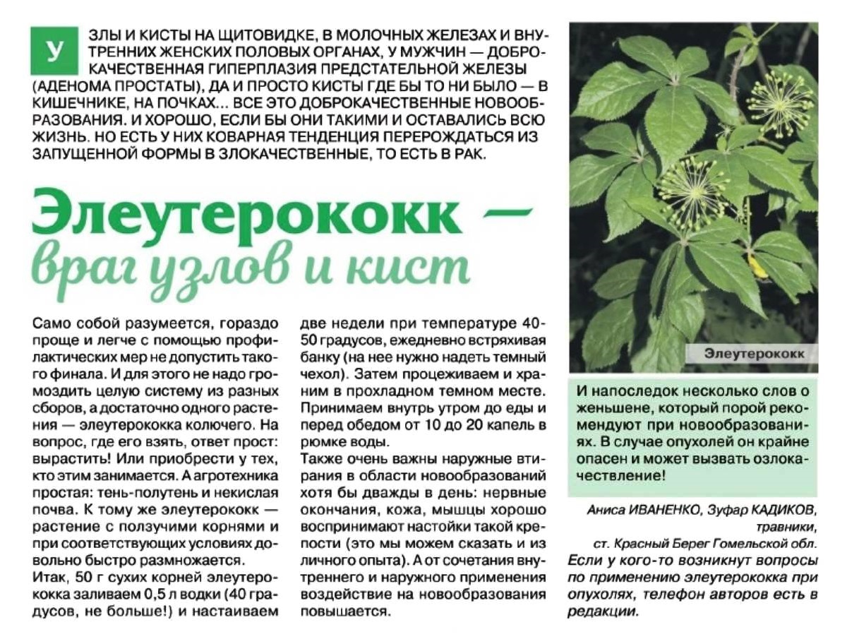 Элеутерококк - враг узлов и кист