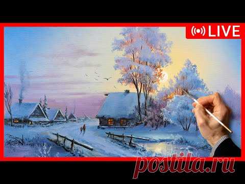 🔴 Acrylic Landscape Painting Tutorial - Winter Sunset / Easy Art / Пейзаж акрилом. Урок рисования.