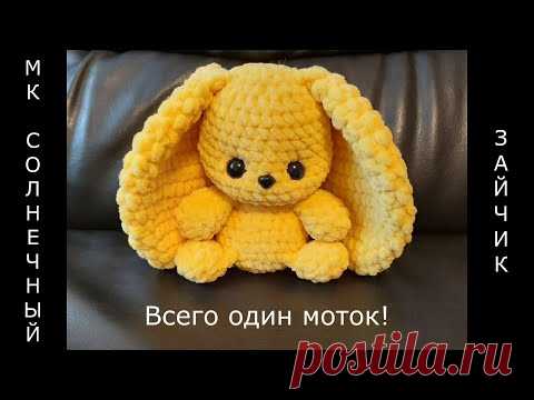 Вязаный СОЛНЕЧНЫЙ ЗАЙЧИК крючком! ВСЕГО ОДИН МОТОК! Цельновязаный зайчик! Легко! Мастер-класс зайка!