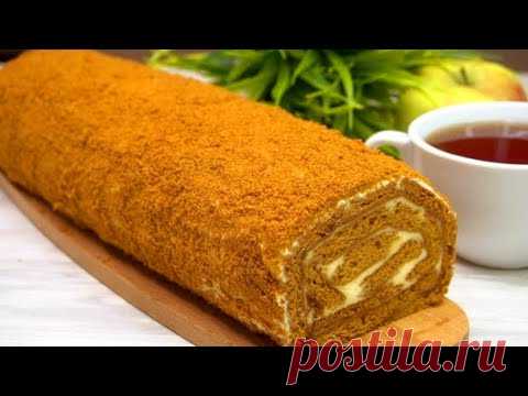 МЕДОВЫЙ РУЛЕТ ЗА 10 МИНУТ. МАМА НАУЧИЛА!ГЕНИАЛЬНО И ПРОСТО!