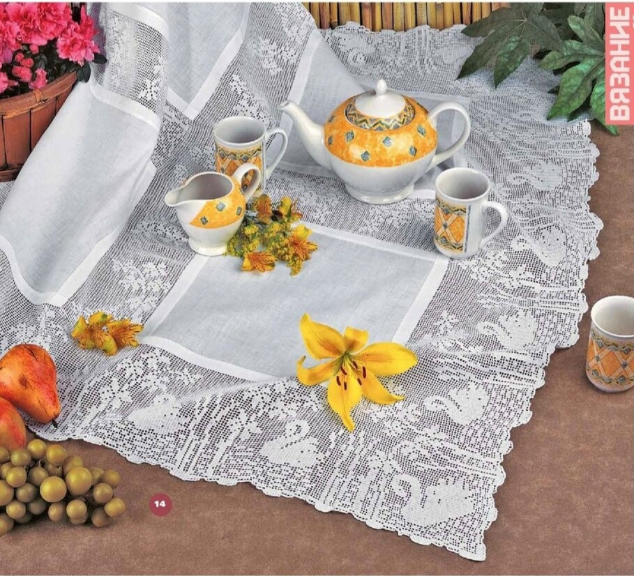 Скатерть с филейными вставками крючком Скатерть с филейными вставками крючкомТак же можно оформить салфеточки и другие предметы.