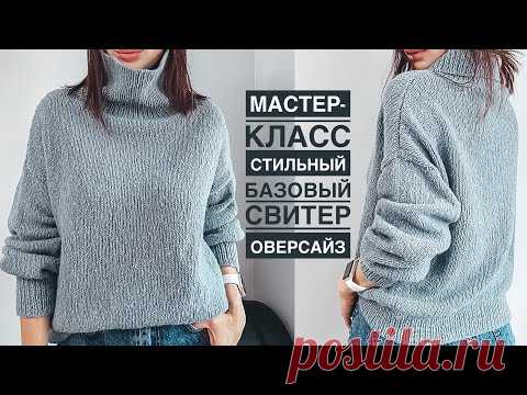 Мастер-класс стильный базовый свитер оверсайз спицами с высоким горлом и спущенным плечом!