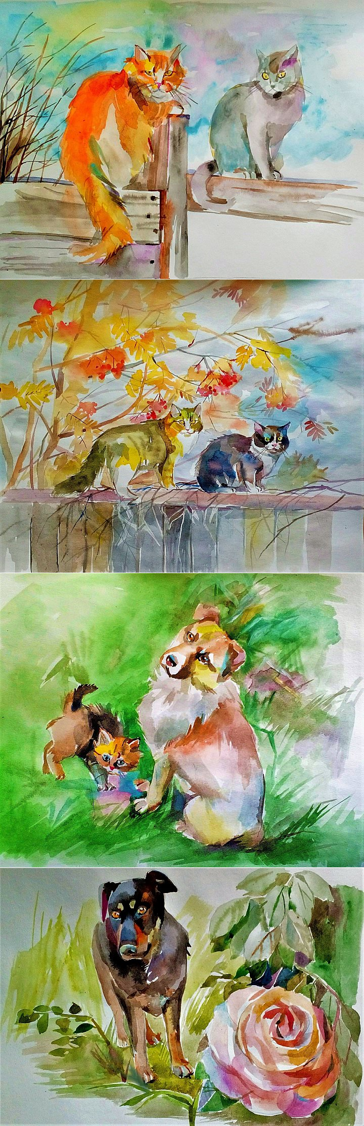 животные акварелью