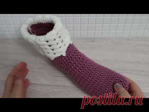 Следки крючком. Домашние тапочки крючком без шва на подошве. Мастер класс