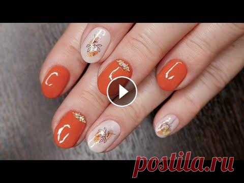 Осенний маникюр в терракотовом цвете на короткие ногти (обычный лак) Выполним осенний дизайн на короткие ногти в терракотовом цвете обычным лаком. В качестве декора буду использовать водные наклейки, хлопья юки, гологра...