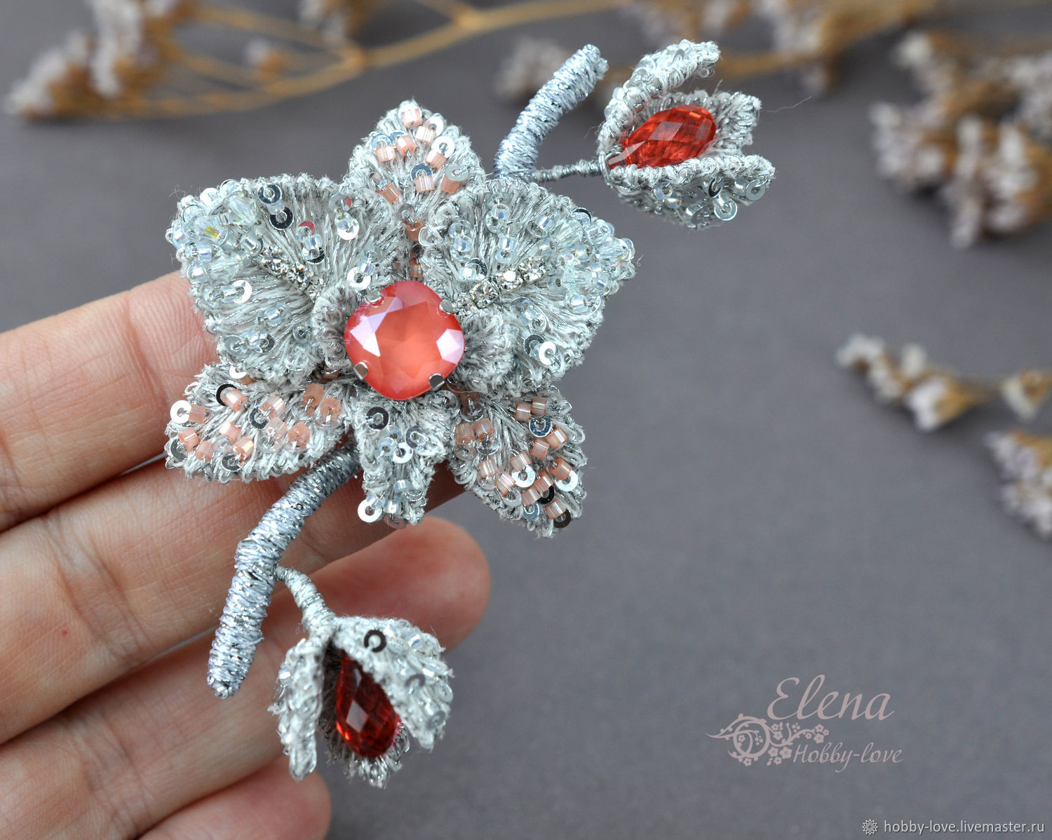 Броши: Орхидея серебро – купить на Ярмарке Мастеров – K247KRU | Брошь-булавка, Пермь Броши: Орхидея серебро в интернет-магазине на Ярмарке Мастеров. Брошь орхидея выполнена в технике 3D (обьемная вышивка) Создана по шаблонам реального маленького цветочка орхидеи. Создает образ ювелирного украшения. Мягко переливаются кристаллы при малейшем попадании света.