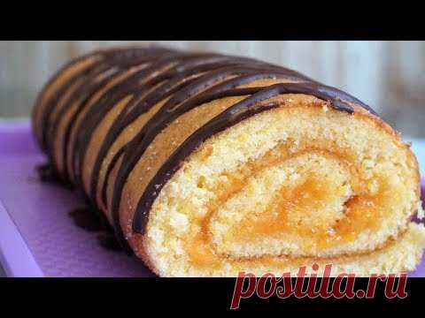 Классический БИСКВИТНЫЙ РУЛЕТ с джемом, получается всегда!