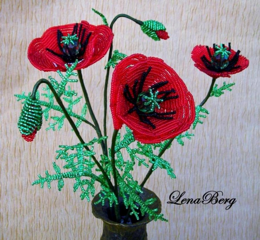 Листья мака из бисера Всё из бисера и о бисере плетём и вышиваем. Учимся плести и вышивать бисером, уроки и техники бисероплетения, мастер классы, схемы для вышивания бисером
