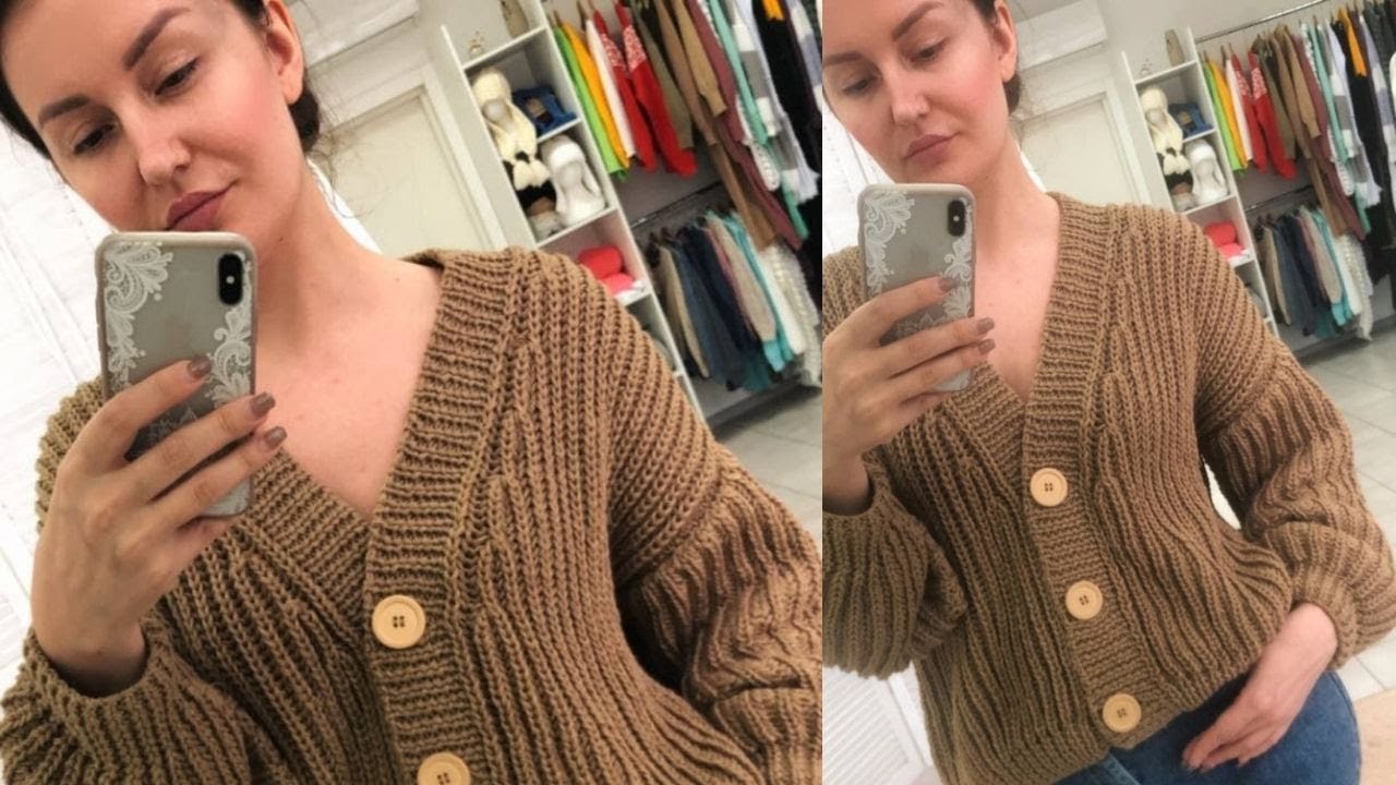 Короткий кардиган английской резинкой | Мастер-класс "Оверсайз кардиган спицами"