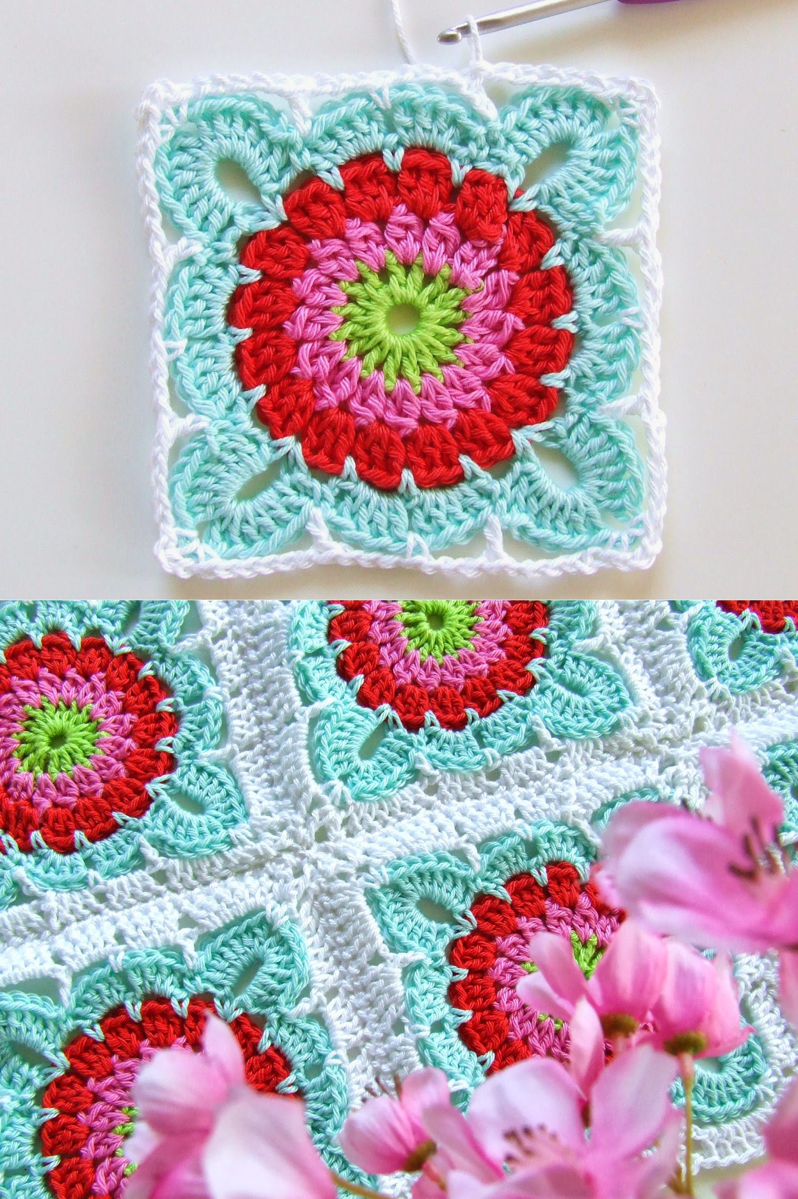 Квадрат с цветком для вязания пледа (и не только!). Мастер-класс.