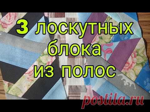 Простые лоскутные блоки из полос ткани. Лоскутное шитье для начинающих. 3 красивых блока из полосок